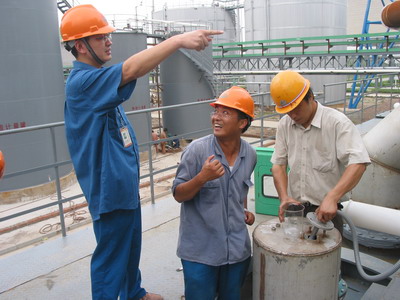 集團(tuán)公司副總經(jīng)理、張家港有限公司總經(jīng)理范德芳現(xiàn)場指揮開車