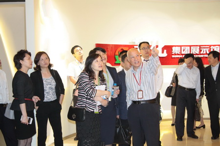 集團(tuán)董事長楊振華和公司領(lǐng)導(dǎo)提前來到接待大廳迎候各位嘉賓的到來。大家首先聽取了蘇化科技園的組建、運營和發(fā)展情況的介紹,隨后參觀了蘇化集團(tuán)展示館,饒有興致的聽取了蘇化發(fā)展歷程講解,圖文并茂的展覽和視頻資料等現(xiàn)代化的表現(xiàn)手法,使大家對蘇化60年來的發(fā)展有了更深的了解,增強(qiáng)了對企業(yè)的信貸支持信心。